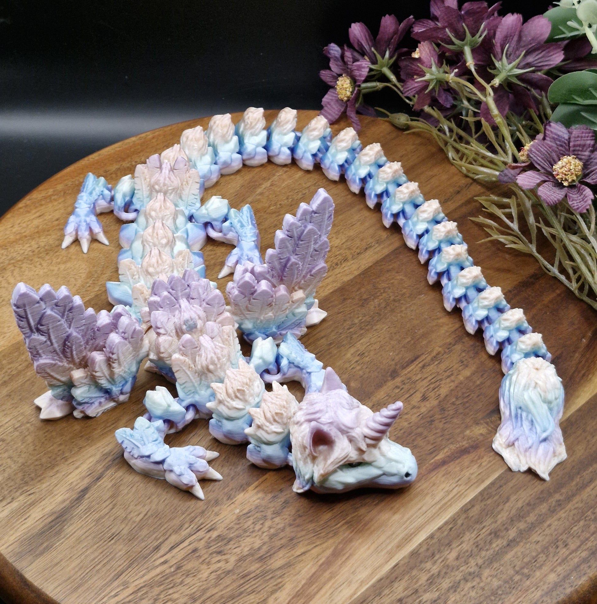 *The dragon pictured is made from Pastel Pearl gradient PLA, and has eye and face details hand painted, and fully sealed with a weatherproof sealant.