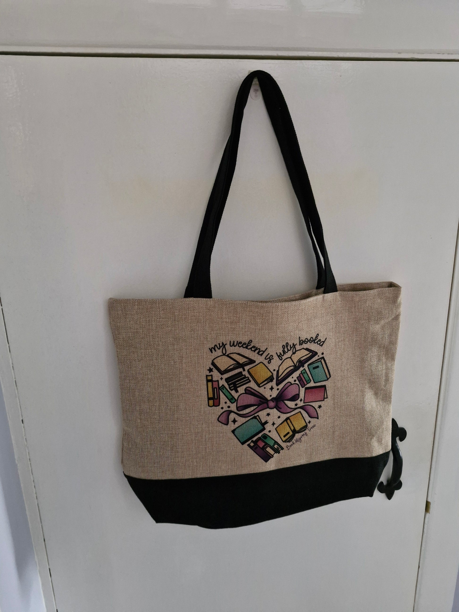 My weekend is fully booked, Heart of books - Bookish tote - Premium Natural Linen Shopper Tote Bag