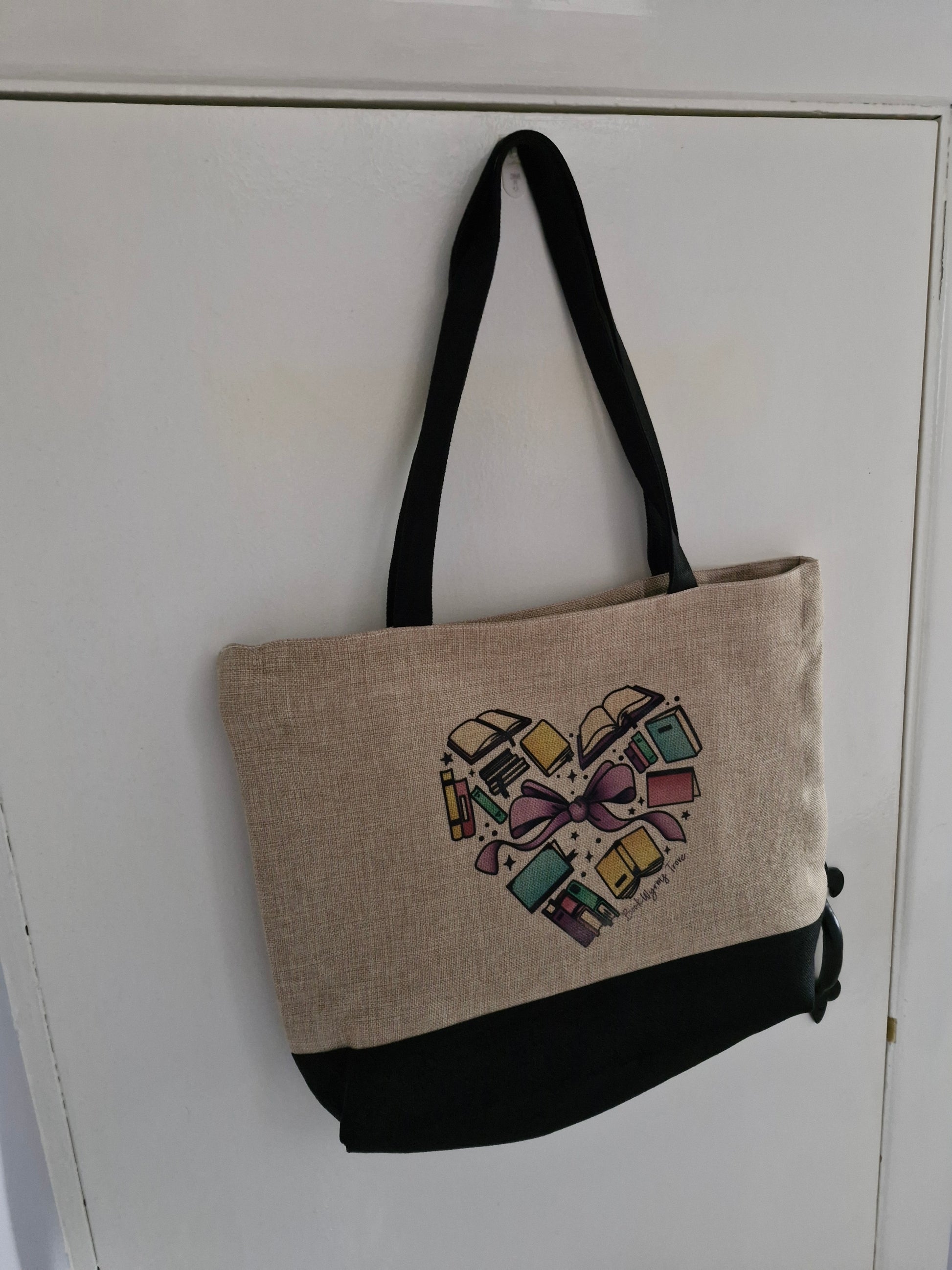 Heart of Books - Bookish tote - Premium Natural Linen Shopper Tote Bag